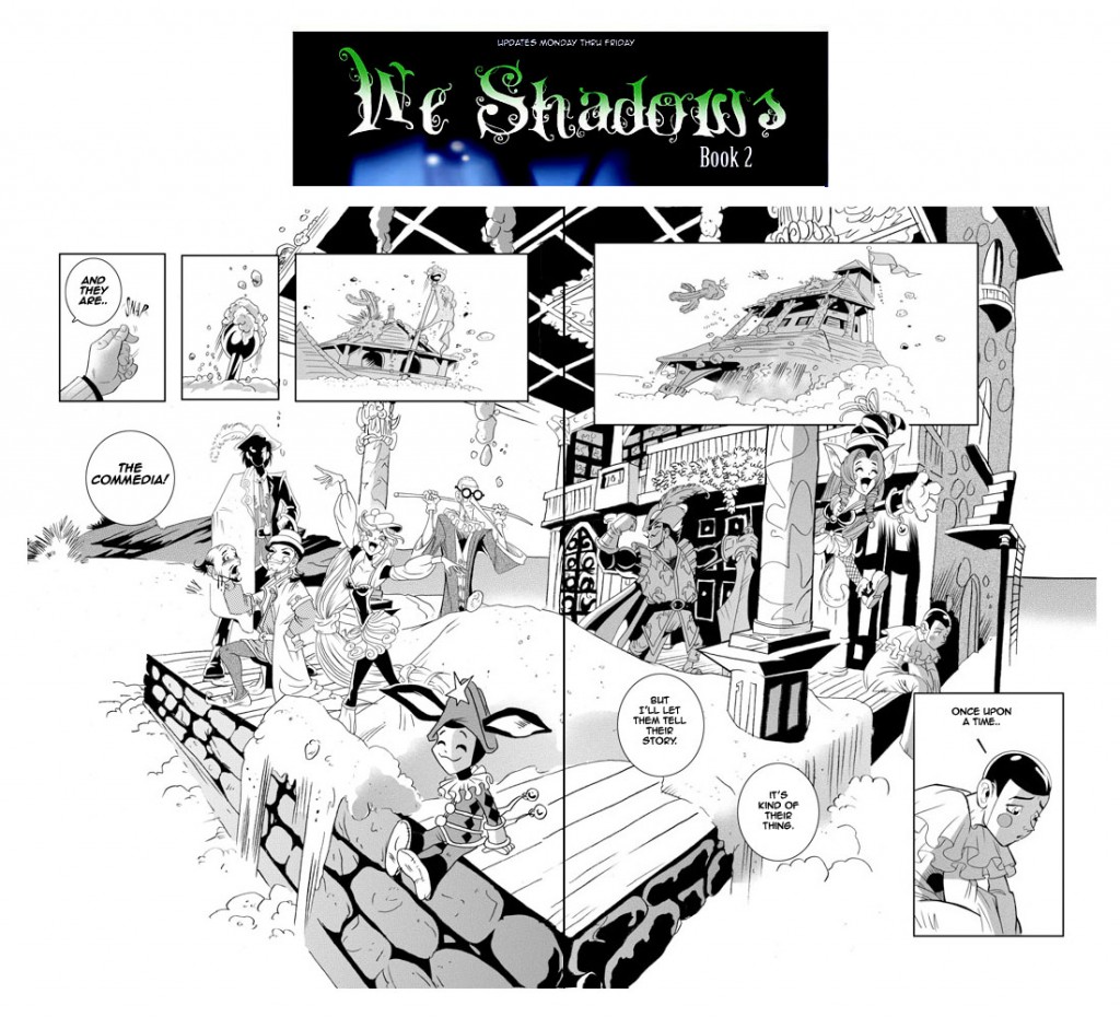 This was originally drawn for print. Have to admit the double page spread in this format suffers a bit. It comes out too small. At least the lettering is large enough to read.