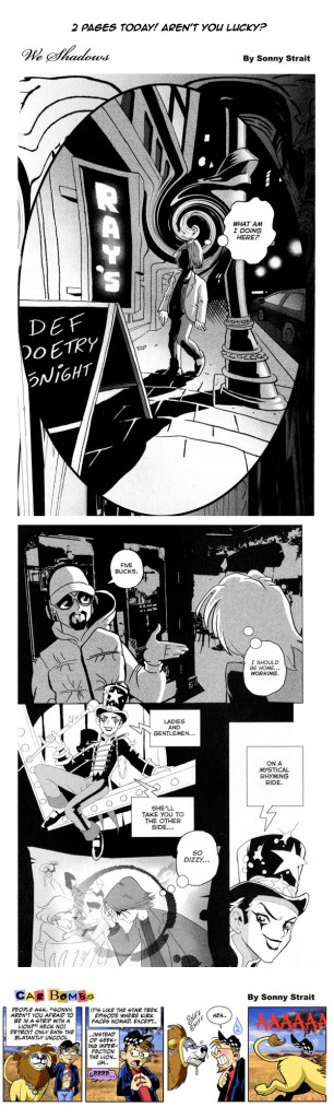 Holy cow! Going into our third consecutive week in the Top Ten Webcomics…not bad for a fledgling series. Be sure to click on the Top Web Comics link in the right column to vote and keep us there.